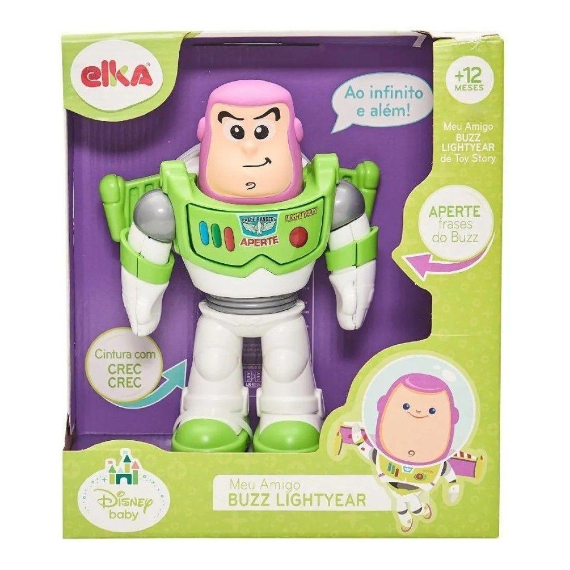 Buzz Lightyear, o queridinho das crianças, vem em missão de paz para seu amigão, te divertir e acompanhar em muitas aventuras. Este incrível boneco, tem braços articulados, e cintura com crec crec. Apertando o botão ele fala frases como as do filme To tory!