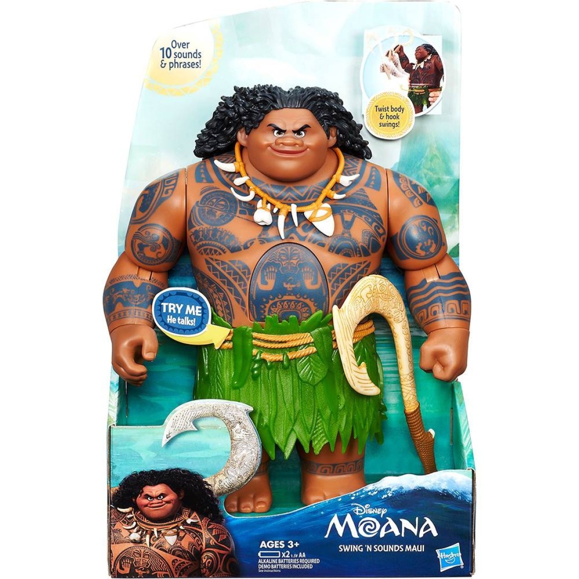 Divirta-se com o a figura eletrônica do Maui, do filme Moana - uma mar de aventuras. O boneco inspirado fielmente no personagem, emite sons e frases em inglês e também faz um movimento com o braço ao girar o corpo, tudo para que a brincadeira seja ainda mais divertida.