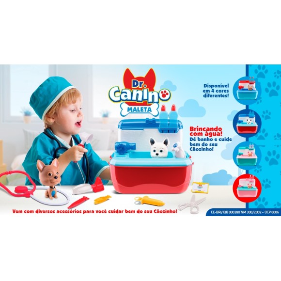 Para cuidar bem do seu cãozinho quando estiver doente ou para evitar que ele fique, a criança se transformará no Dr. Canino, com direito a crachá nomeado, tesoura, martelo, otoscópio, pinça, termômetro, injeçãozinha e estetoscópio no formato de uma patinha para ouvir o coraçãozinho de seu filhote.