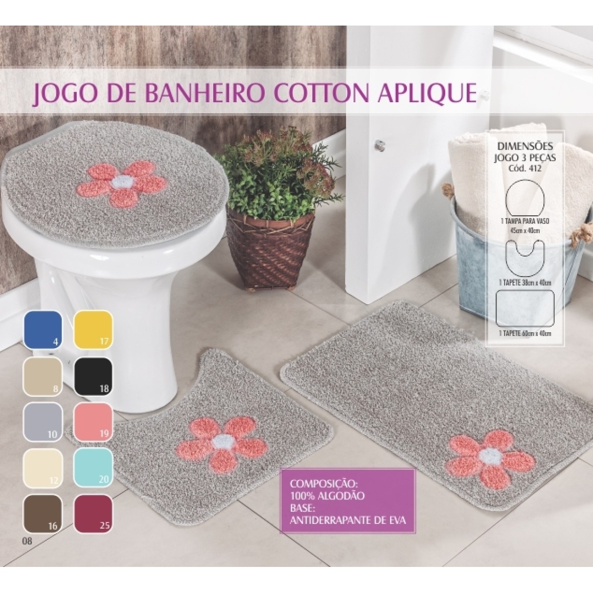 412 JOGO DE BANHEIRO COTTON COM APLIQUE