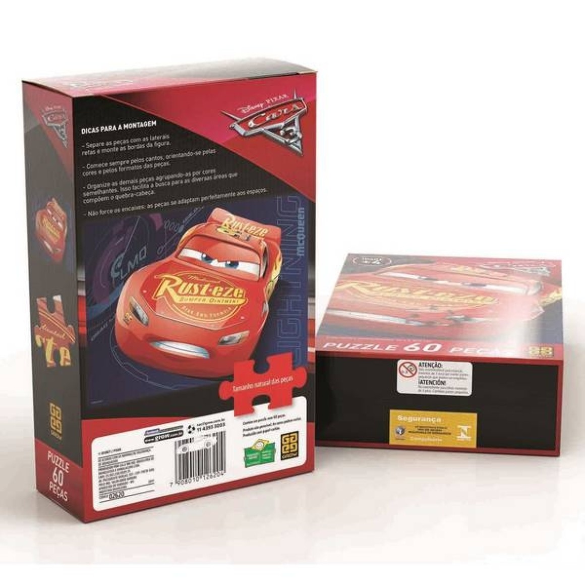 Não deixe de brincar e se divertir com este quebra-cabeça da Grow! São 60 peças, para você encaixar uma a uma até formar uma divertida e super colorida imagem dos personagens do filme Carros, da Disney, tão adorado pela garotada. Mais que um passatempo divertido, os quebra-cabeças desenvolvem o raciocínio, a concentração e a coordenação motora. Um produto perfeito para presentear! Informações básicas: Marca: Grow Modelo: 2620 Características: Material predominante: papel cartão Dimensão montado: 30,8 x 22,4 cm Conteúdo da embalagem: 1 quebra cabeça de 60 peças Idade recomendada: a partir de 4 anos Especificações técnicas: Garantia: contra defeitos de fabricação