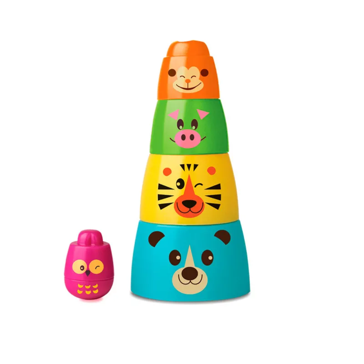 A Matrioska da Elka é pura diversão, a cada abertura a criança descobre um animal, são empilháveis, possuem a base arredondada como um João-bobo, coloridas e fáceis de encaixar.