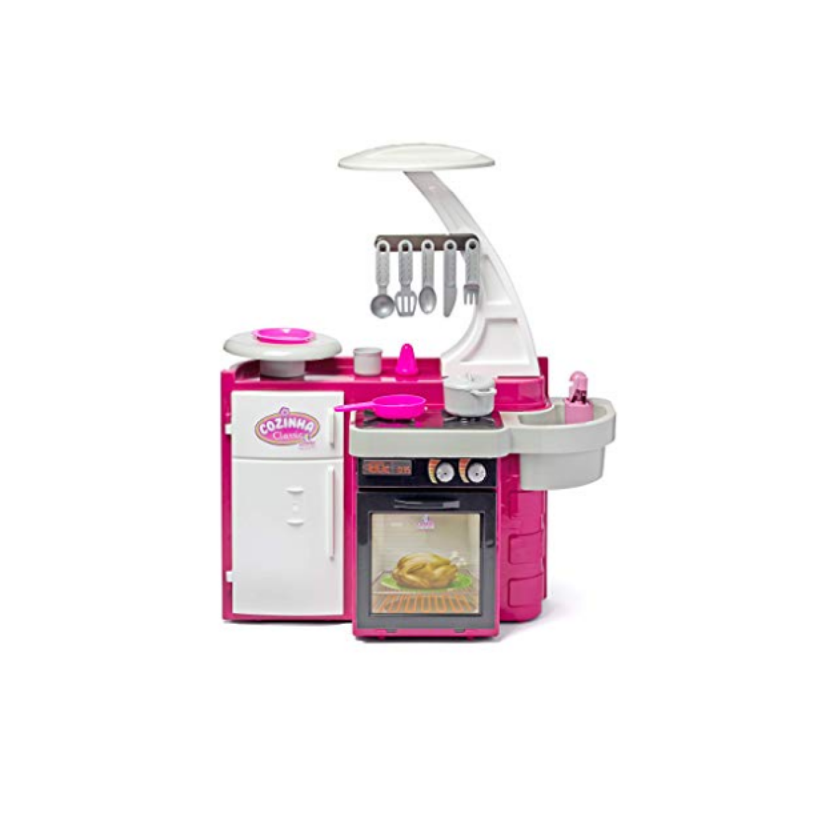 As meninas adoram brincar de casinha. Pensando em transformar essa brincadeira em algo ainda mais real, a Cotiplás traz como novidade a Cozinha Classic. Ela vem com todos os produtos para tornar a sua cozinha em realidade. A geladeira abre e fecha, o forno abre e fecha, a pia sai água de verdade e os botes giram. A embalagem vem com 1 copo, 1 cozinha, 1 faca, 1 garfo, 1 colher, 1 frigideira com tampa, 1 panela, 1 saleiro e 1 prato. Chame suas amigas para ficar mais divertido ainda!