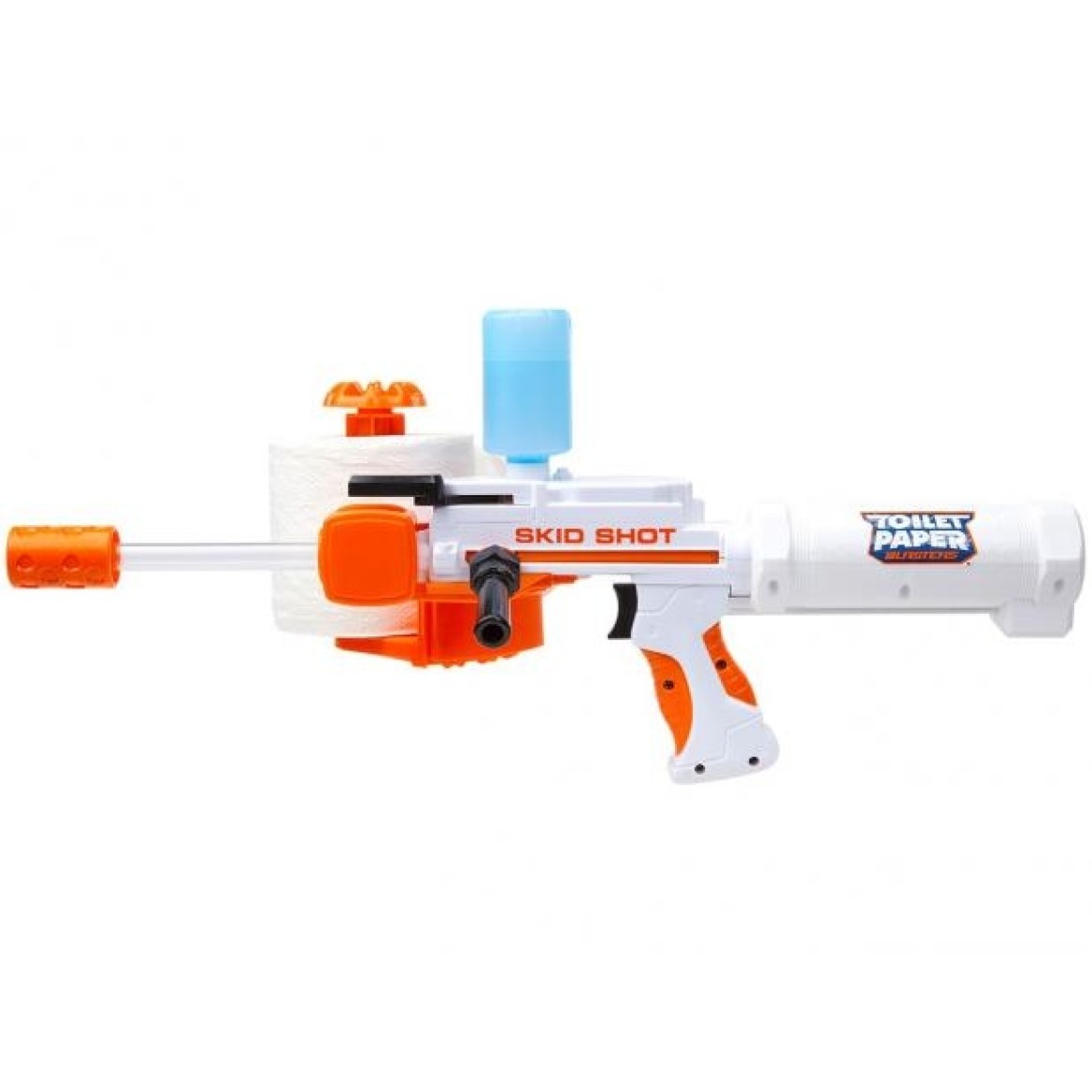 Chame os amigos para testarem a pontaria com esse divertido Lançador de Papel - Toilet Paper Blaster - Candide O Toilet Paper Blaster utiliza papel higiênico e agua como munição. Basta manter o reservatório abastecido para batalhas sem fim.