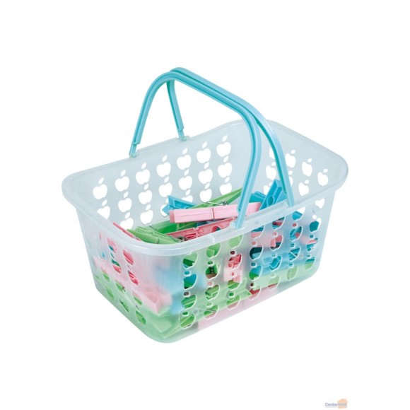 Kit composto de uma cesta com alças e 36 prendedores roupas.