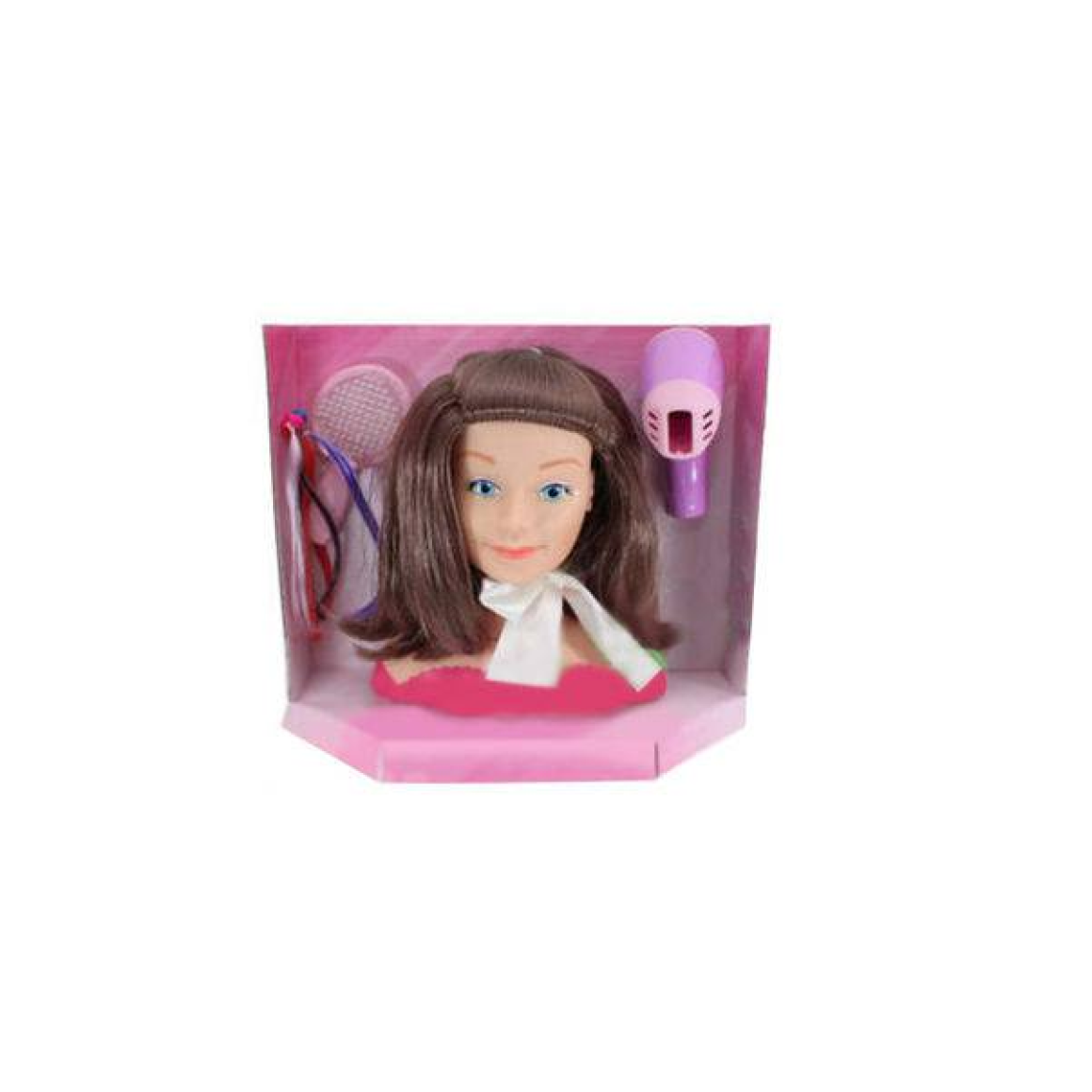 Contém 01 boneca maniquim em vinil com cabelo em nylon, 01 secador de brinquedo, 01 escova de brinquedo, 01 presilha, 04 apliques de mechas e 01 laço.