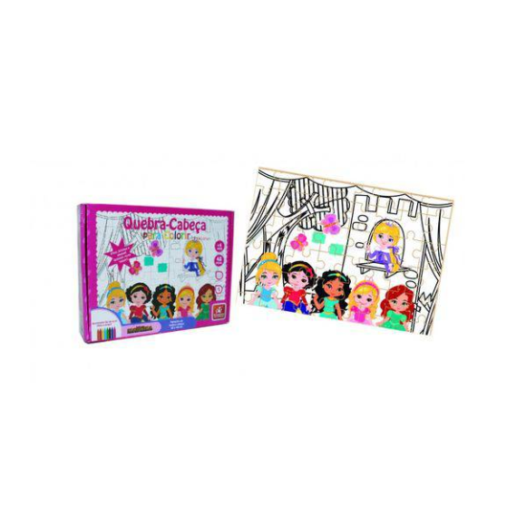Quebra Cabeça para Colorir Princesas - Educativo em Madeira