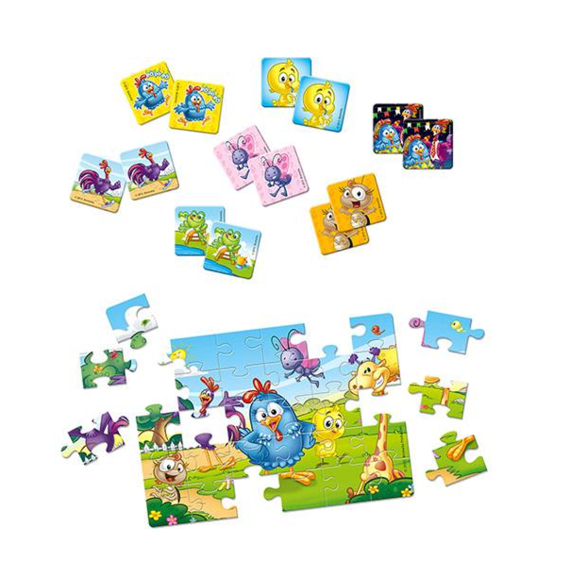 Divirta-se com a coleção de Jogos 2 em 1 com a Galinha Pintadinha e sua turma.