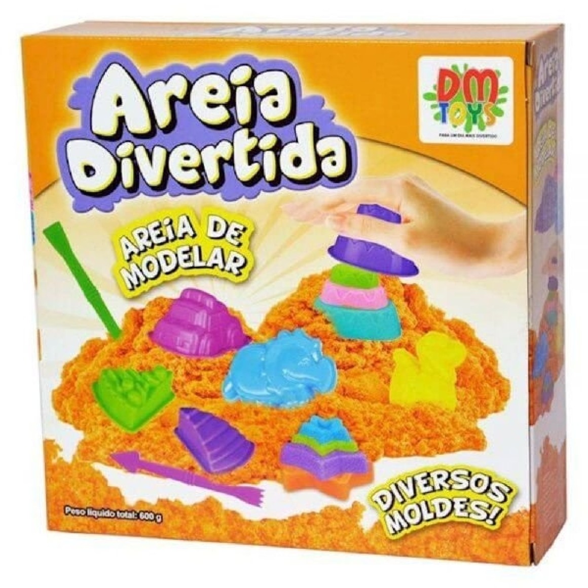 Areia Divertida para modelar. Basta brincar com os moldes, inserindo areia e criando formas. Após a brincadeira, não esqueça de limpar para guardar. Não adicione água no produto. Contém: 8 moldes de plástico, 8 moldes vazados de plástico, 4 ferramentas de plástico e 2 sacos de areia com 300 g cada. Marca: Dm Toys. Faixa etária: a partir de 3 anos de idade. Não ingerir. Não tóxico. Medidas da embalagem: 23,5 x 23,5 x 6,5 cm. Adquira os potes de refil com cores diferentes para a abrincadeira ficar ainda mais divertida (vendidos separadamente - consulte disponibilidade).