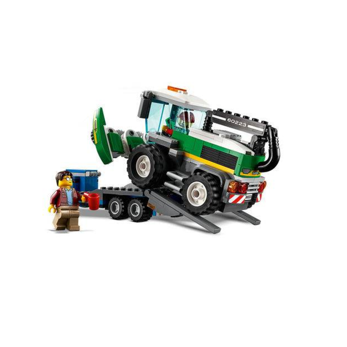 Salte para fora da cabine do caminhão e ajude o fazendeiro a fazer as colheitas! São 358 peças para montar e brincar! Desengate o trailer, baixe as rampas e descarregue a colheitadeira. Quando o fazendeiro tiver terminado de lavrar o campo, pegue a ferramenta e volte a carregar a colheitadeira. Eleve as rampas, engate o reboque e parta para a próxima plantação. Não esqueça de acenar para o espantalho quando passar por ele! O trabalho de um fazendeiro nunca acaba na LEGO City!