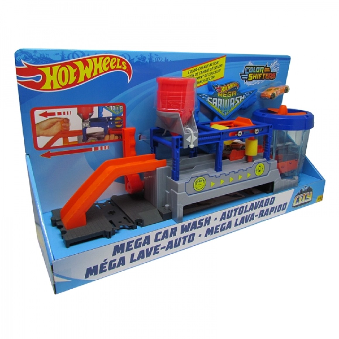 O novo lava-rápido do Hot Wheels inclui uma fita automatizada para o emocionante brinquedo com água e carros que mudam de cor. Ele vem em um pacote enorme na forma de bandeja e 1 carro que muda de cor.