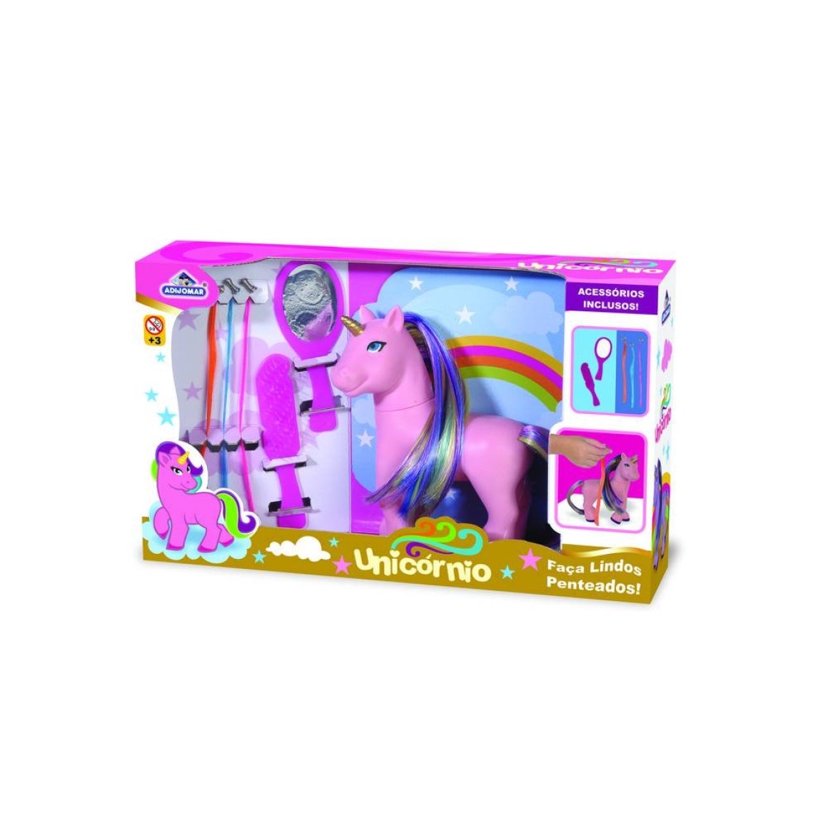 Tamanho aproximado do unicórnio: 17cm de altura e 14cm de comprimento.