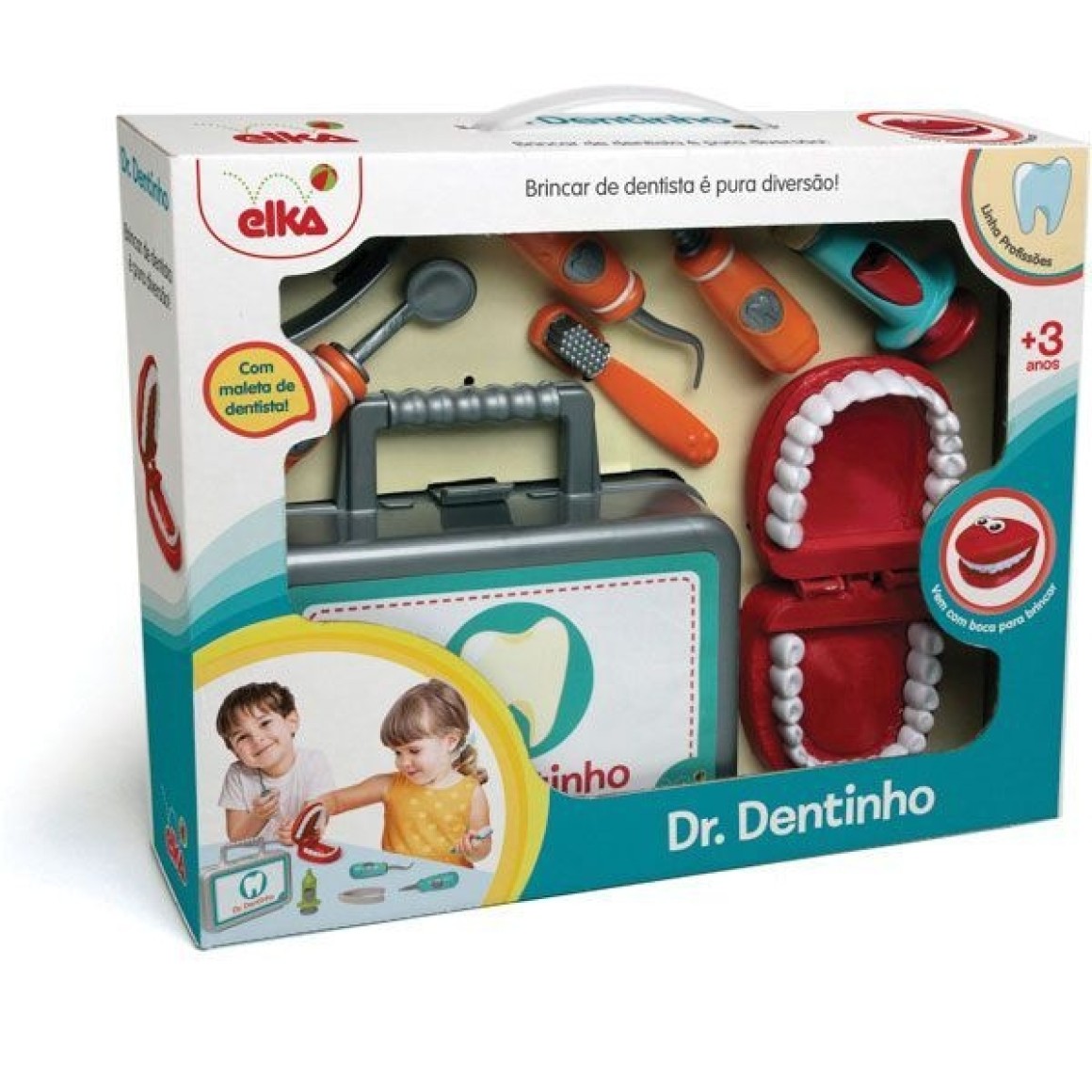 Kit de Dentista da Elka vai com espelhinho para ver aquela carie bem lá no fundo, pinça para arrancar o dente, injeção para aplicar a anestesia, motorzinho para tratar daquele dente difícil, escova de dente, explorador e até uma boquinha para usar todas essas ferramentas! Tudo isso guardados em uma maleta prática que ajuda a criança a levar a brincadeira para onde quiser!