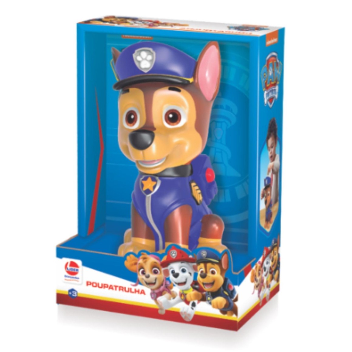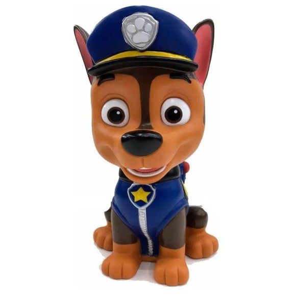 Cofrinho Poupatrulha da Patrulha Canina, para as crianças aprenderem a poupar desde cedo. Esse lindo cofrinho do Chase é 100% Atoxico, feito em vinil perfumado, possui abertura para por o dinheiro na cabeça do personagem e abertura para tirar o dinheiro na parte de baixo.
