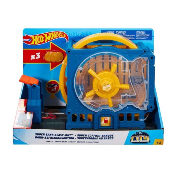 A invasão do Super Bank da cidade permite que as crianças girem o disco do cofre até que ele se encaixe no lugar para destravá-lo, em seguida, atropele um carro Hot Wheels pelo looping dentro do banco para que a porta do cofre seja aberta, liberando o dinheiro.