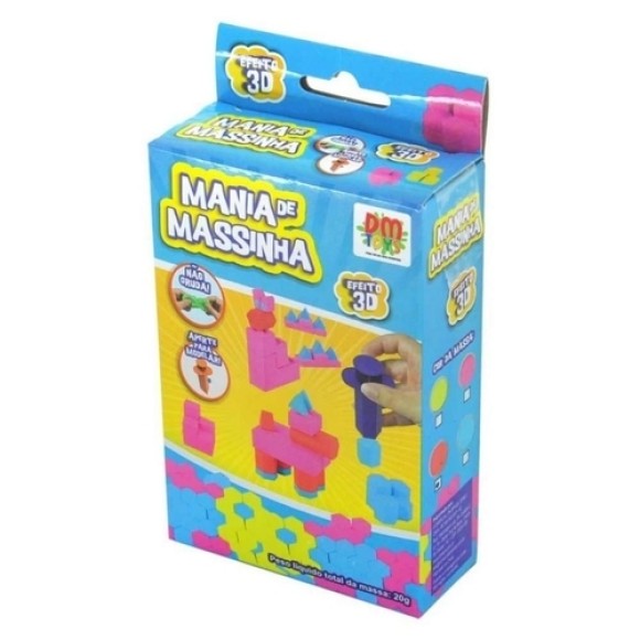 Massa de modelar com textura mais resistente, que possibilita modelar com efeito 3D, pois o objeto criado fica mais rígido que a massa de modelar tradicional. Este kit vem com um pote de 20g, ferramenta e moldes que variam o desenho em 03 sortimentos identificados na embalagem além da cor da massinha.