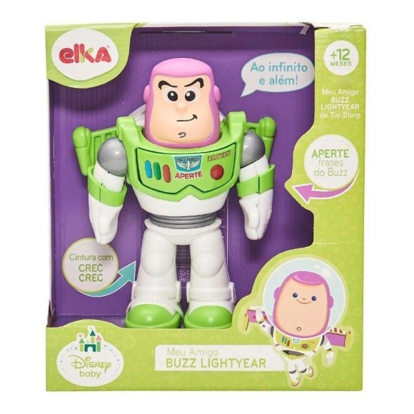 Buzz Lightyear, o queridinho das crianças, vem em missão de paz para seu amigão, te divertir e acompanhar em muitas aventuras. Este incrível boneco, tem braços articulados, e cintura com crec crec. Apertando o botão ele fala frases como as do filme To tory!