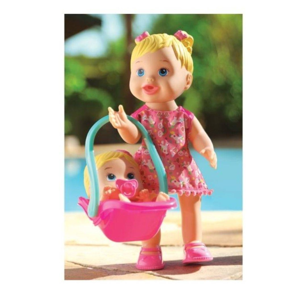são duas lindas bonecas mãe e filha. acompanha um carrinho que vira bebê conforto e uma chupetinha para a filhinha.