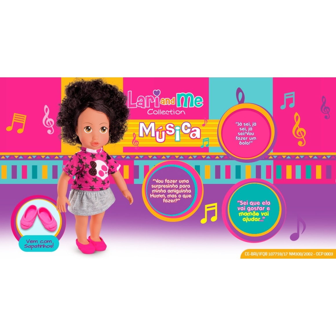 Boneca Negra Lari and Me Collection Música - RomaQue tal ouvir uma música? A Lari and Me - Música, canta uma linda musiquinha para você dançar com ela. Vem com uma roupinha fashion e lindos sapatinhos. Feita em vinil especial, atóxico e enraizada à mão.