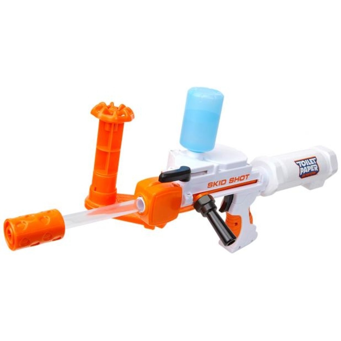 Chame os amigos para testarem a pontaria com esse divertido Lançador de Papel - Toilet Paper Blaster - Candide O Toilet Paper Blaster utiliza papel higiênico e agua como munição. Basta manter o reservatório abastecido para batalhas sem fim.