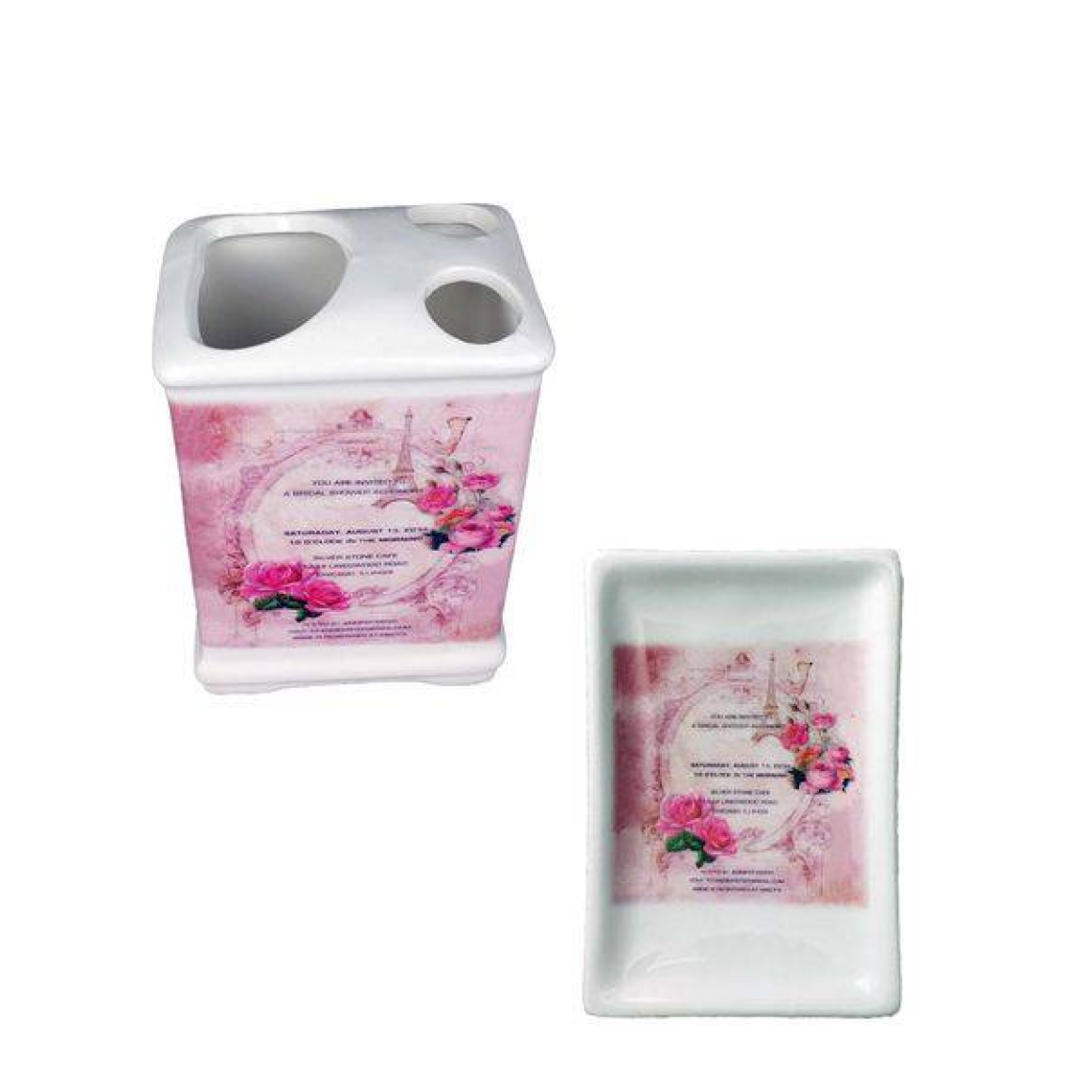 O kit é composto por três peças em Porcelana de cor Branca, trazendo na estampa letras em estilo Vintage em excelente acabamento e tamanho.