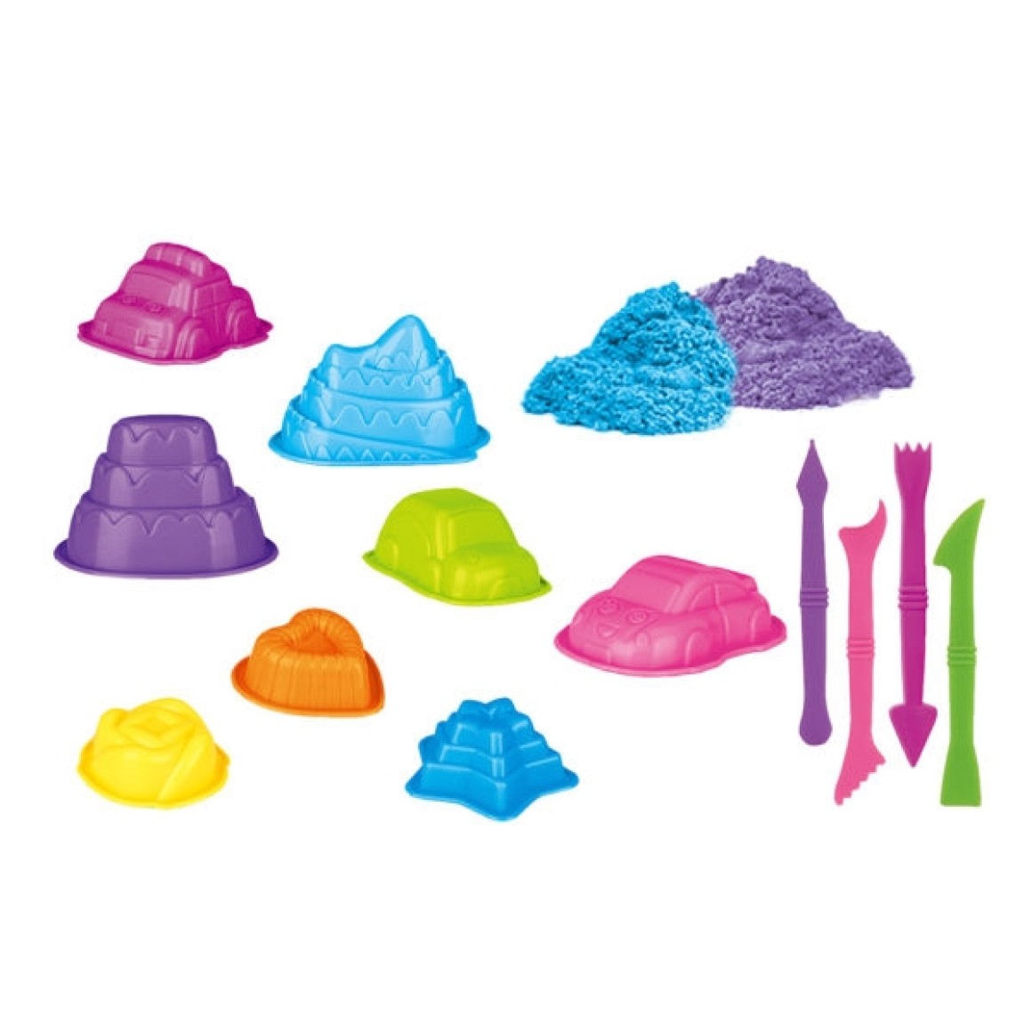 Areia Divertida para modelar. Basta brincar com os moldes, inserindo areia e criando formas. Após a brincadeira, não esqueça de limpar para guardar. Não adicione água no produto. Contém: 8 moldes de plástico, 8 moldes vazados de plástico, 4 ferramentas de plástico e 2 sacos de areia com 300 g cada. Marca: Dm Toys. Faixa etária: a partir de 3 anos de idade. Não ingerir. Não tóxico. Medidas da embalagem: 23,5 x 23,5 x 6,5 cm. Adquira os potes de refil com cores diferentes para a abrincadeira ficar ainda mais divertida (vendidos separadamente - consulte disponibilidade).