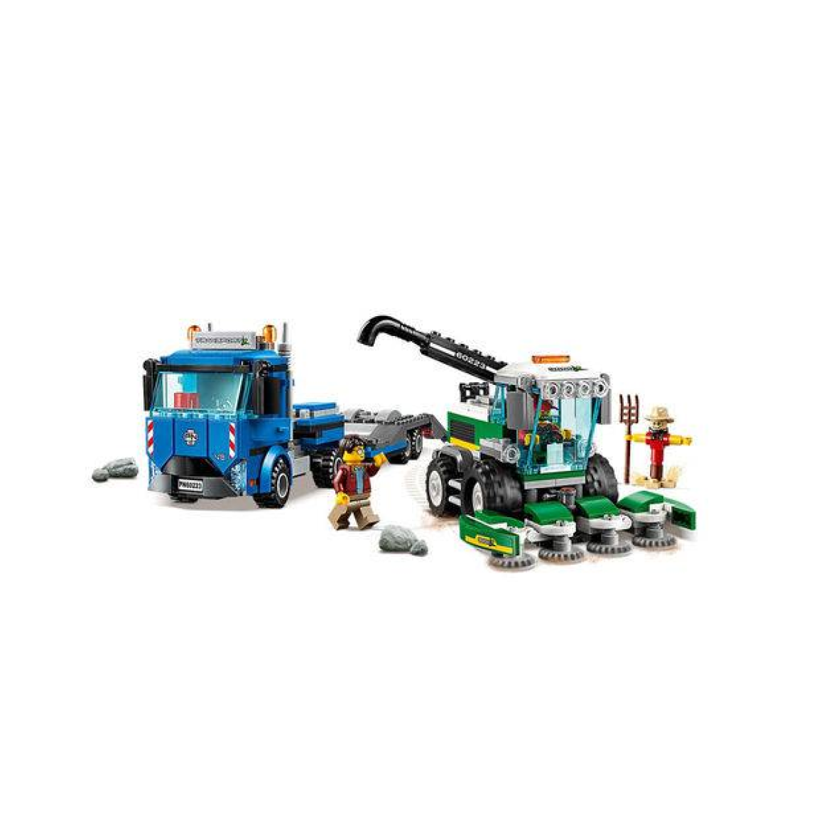 Salte para fora da cabine do caminhão e ajude o fazendeiro a fazer as colheitas! São 358 peças para montar e brincar! Desengate o trailer, baixe as rampas e descarregue a colheitadeira. Quando o fazendeiro tiver terminado de lavrar o campo, pegue a ferramenta e volte a carregar a colheitadeira. Eleve as rampas, engate o reboque e parta para a próxima plantação. Não esqueça de acenar para o espantalho quando passar por ele! O trabalho de um fazendeiro nunca acaba na LEGO City!