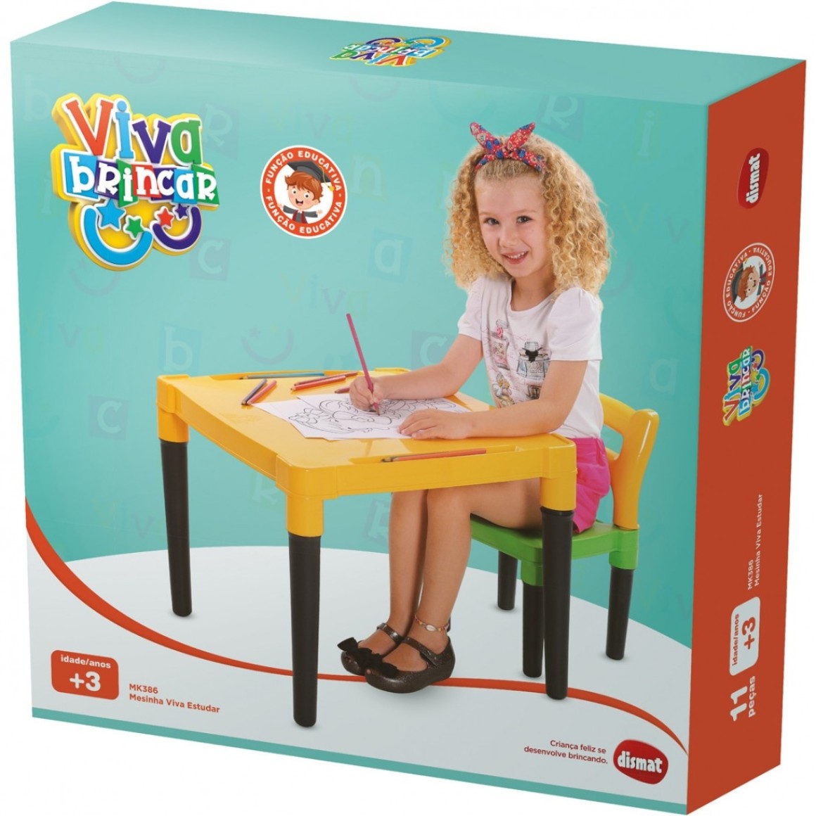Mesinha Infantil Desmontável e fácil para montar com 01 cadeirinha Dismat Viva estudar.