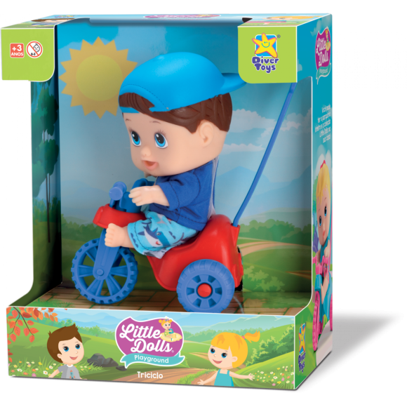 Boneco Little Dolls Playground c/ Triciclo Menino - Divertoys Um lindo