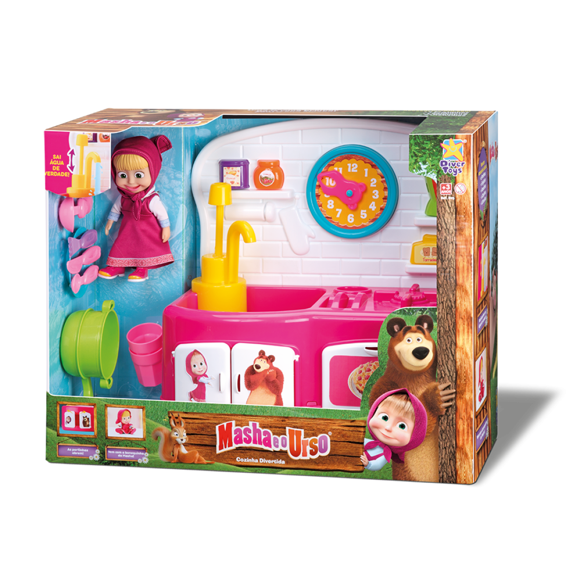 A Cozinha sai água de verdade e vem com uma Boneca Masha.