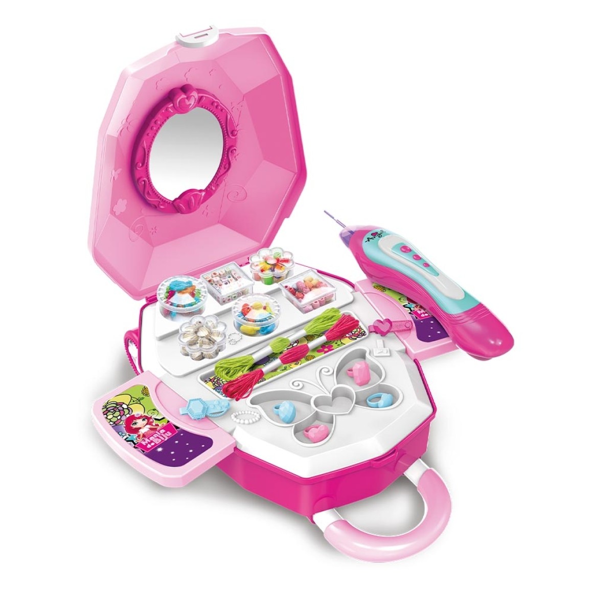 Com ferramenta para fazer bijuterias e penteados